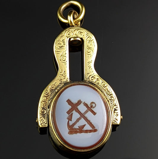 Antique Faith and Hope seal fob pendant, 9ct gold, Sardonyx and Bloodstone