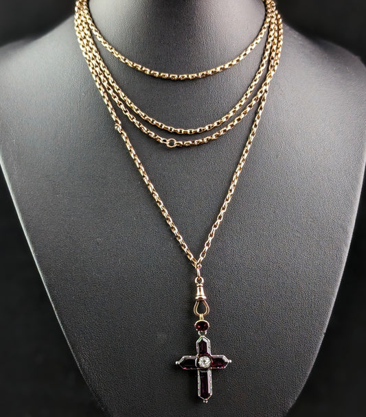 Antique Georgian Diamond and Almandine Garnet Cross pendant, 9ct gold and silver