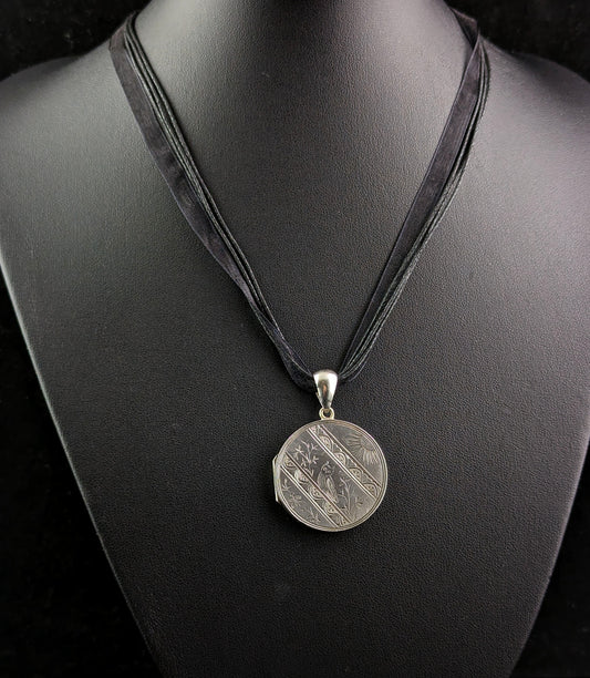Antique Victorian silver locket, Owl, Butterfly, Sunshine, Aesthetic
