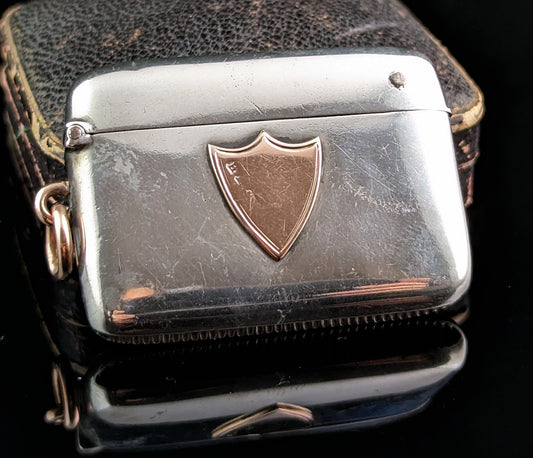 Antique sterling silver and 9ct gold vesta case, Pendant, Victorian