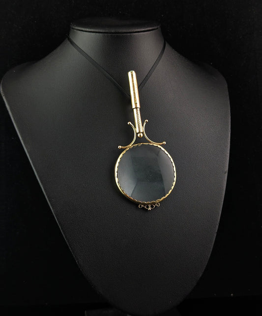 Antique Georgian gold quizzing glass, pendant, 9ct gold cased