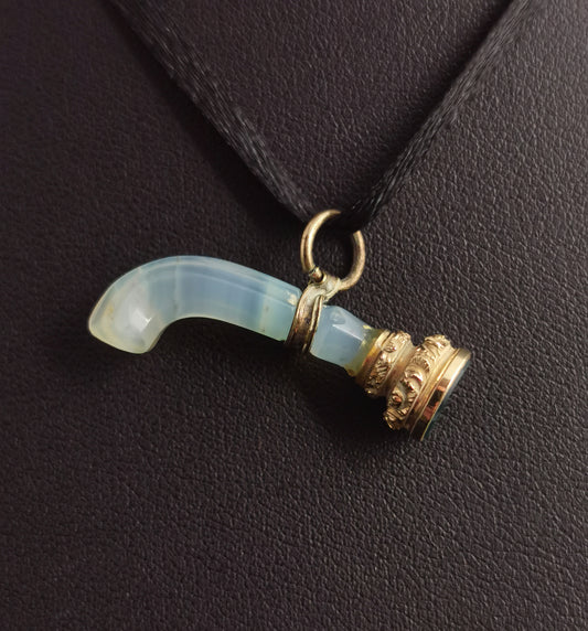 Antique Georgian seal fob pendant, Agate and Bloodstone, 9ct gold, pistol grip