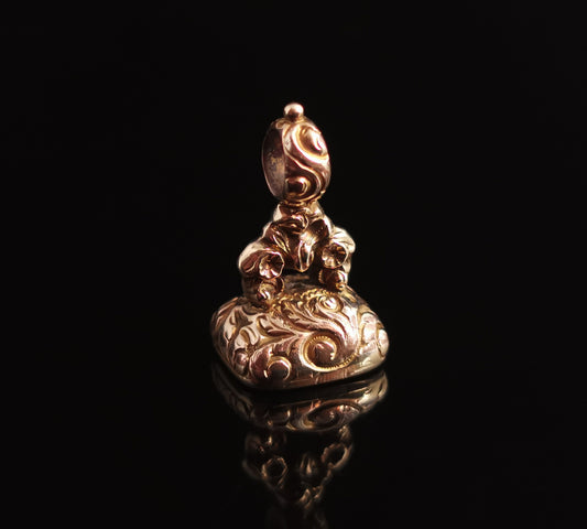 Antique Georgian seal fob pendant, rolled gold and quartz