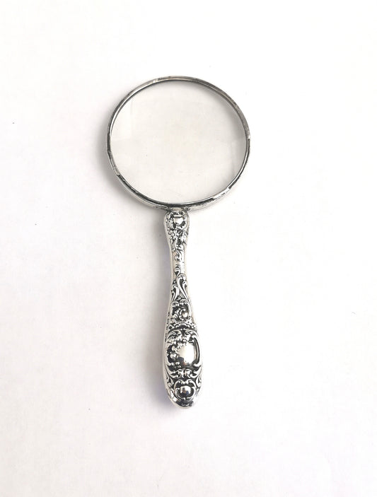 Antique Victorian Sterling silver magnifying glass, repousse