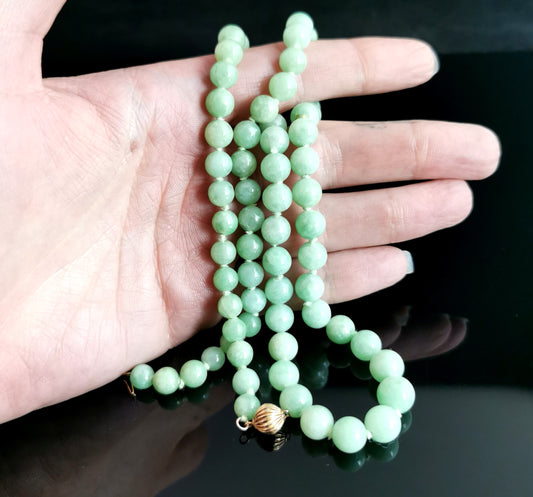 Vintage Art Deco Jade bead necklace, 14k yellow gold
