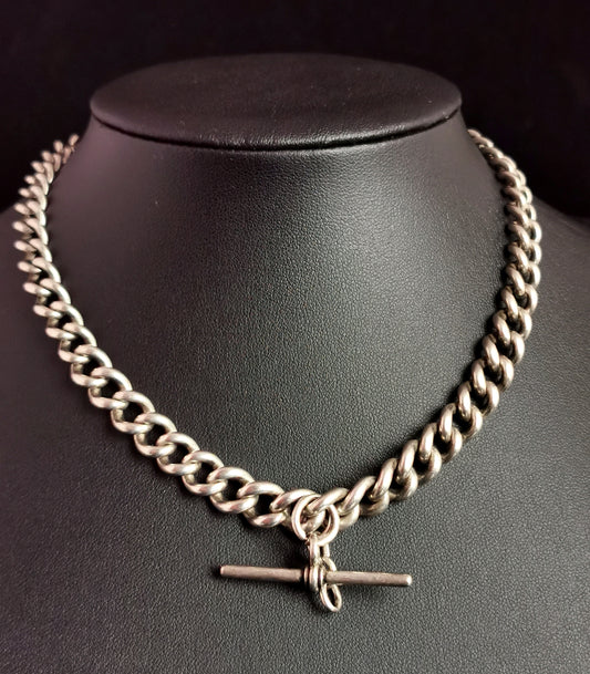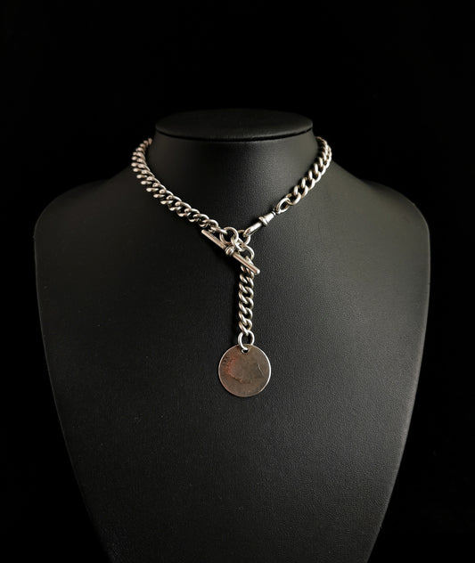 Antique Victorian silver Albert chain, watch chain Coin fob