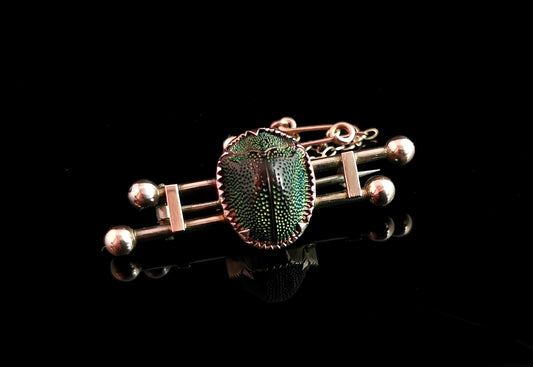 Antique Egyptian revival scarab brooch, 9ct gold, Victorian