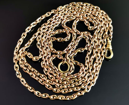 Antique 9ct gold long chain, longuard l, muff chain necklace, Victorian