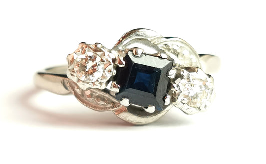 Art Deco French cut Sapphire and diamond ring, 18ct white gold