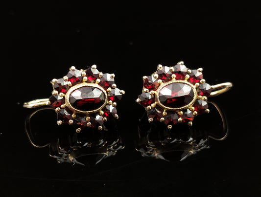 Vintage Bohemian garnet cluster earrings, 900 silver gilt
