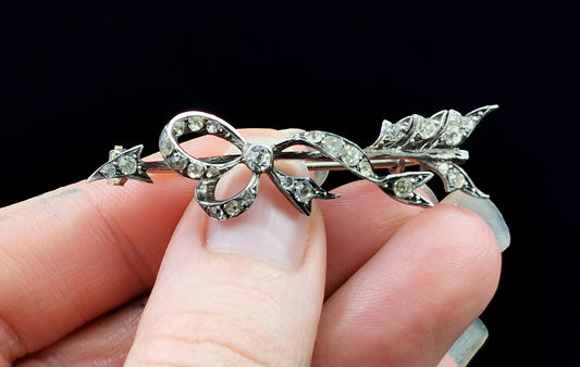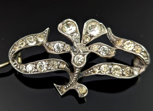 Antique paste Arrow and Ribbon bow brooch, sterling silver, Art Deco