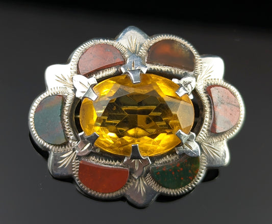 Antique Scottish agate, silver and Cairngorm citrine brooch