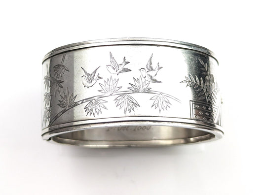 Antique Victorian silver cuff bangle, Aesthetic, Swallows