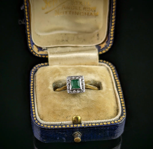 Vintage Art Deco Emerald and Diamond ring, 18ct gold and Platinum