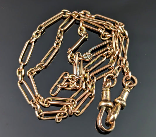 Antique 9ct Rose gold Albert chain, necklace, trombone link