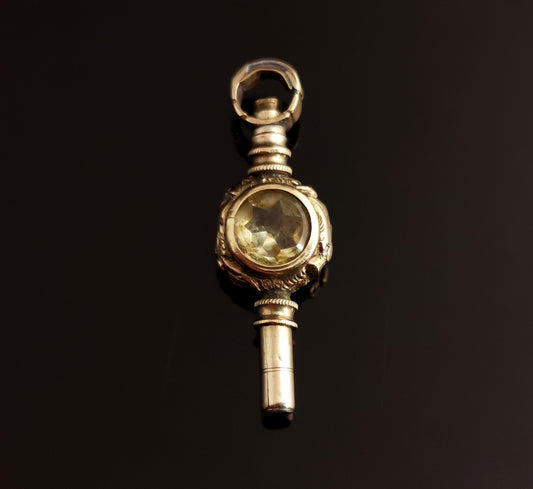 Antique Victorian watch key pendant, Citrine and bloodstone, gold plated