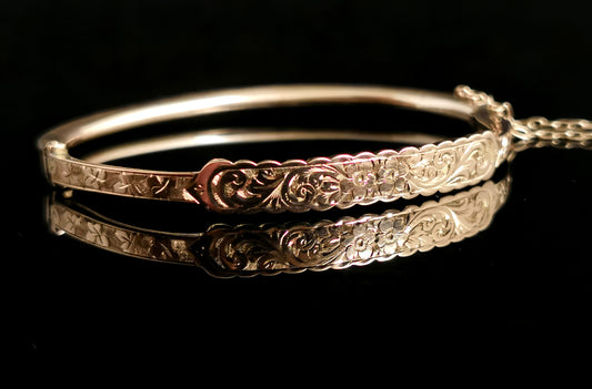 Antique Victorian 9ct gold bangle, floral engraved
