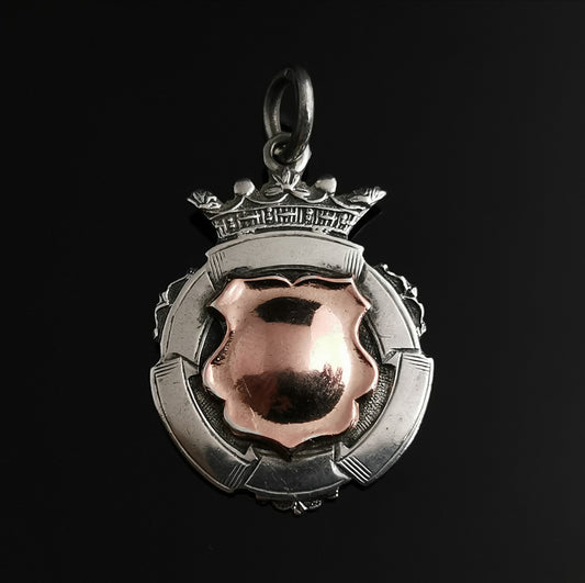 Art Deco 9ct Rose gold and sterling silver fob pendant, watch fob