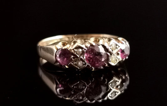 Antique Victorian Garnet and seed pearl ring, 9ct gold