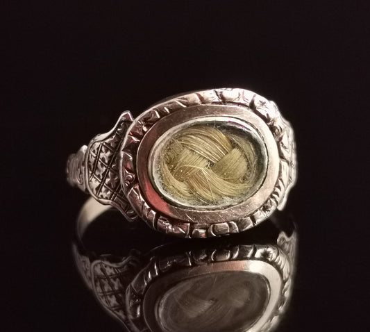 Antique Georgian mourning ring, 9ct gold, hairwork