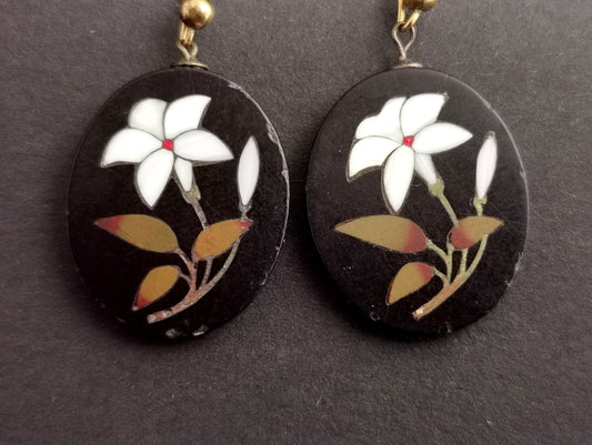 Antique Victorian Pietra Dura dangly earrings, 9ct gold