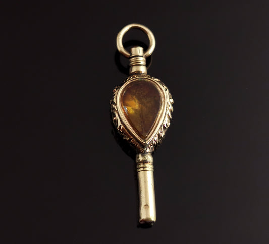 Antique Victorian 9ct gold watch key, citrine and bloodstone, pendant