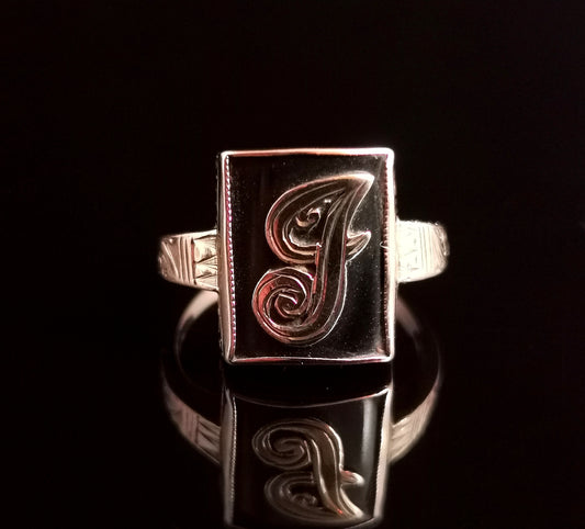 Antique Victorian Mourning ring, 9ct gold and Onyx, Initial J