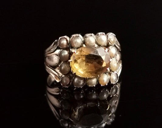 Antique Georgian Citrine and pearl ring, 9ct gold