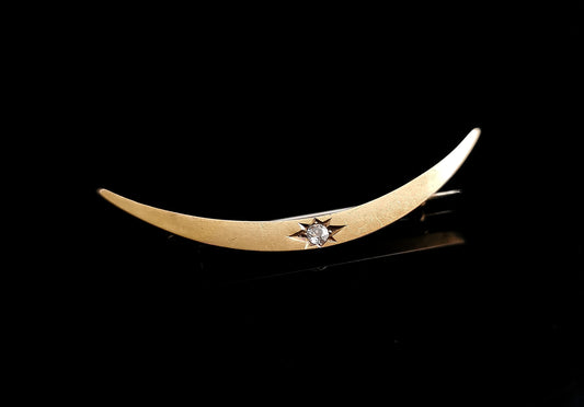 Antique Victorian 15ct gold Diamond crescent brooch