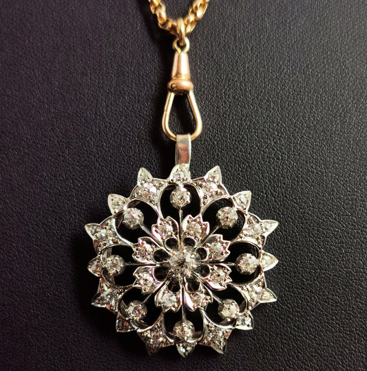 Antique Victorian Diamond flower pendant, 9ct gold and silver