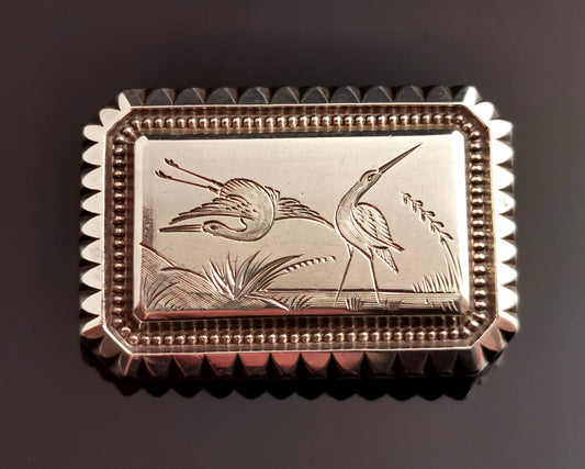 Antique Victorian Aesthetic silver brooch, Herons