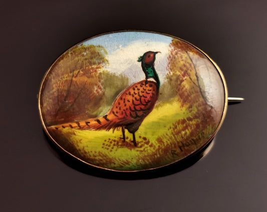 AusverkauftAntique enamelled Pheasant brooch Minton