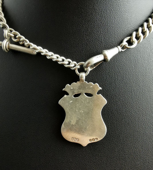 Antique Victorian silver Albert chain, watch chain, fob