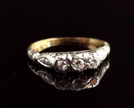 Art Deco three stone diamond ring, 18ct gold and platinum