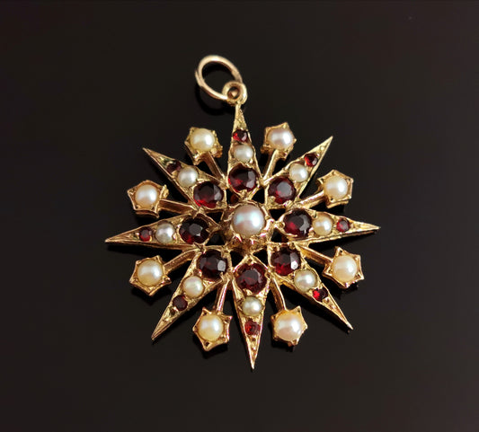 Antique Garnet and pearl Starburst pendant, 9ct gold