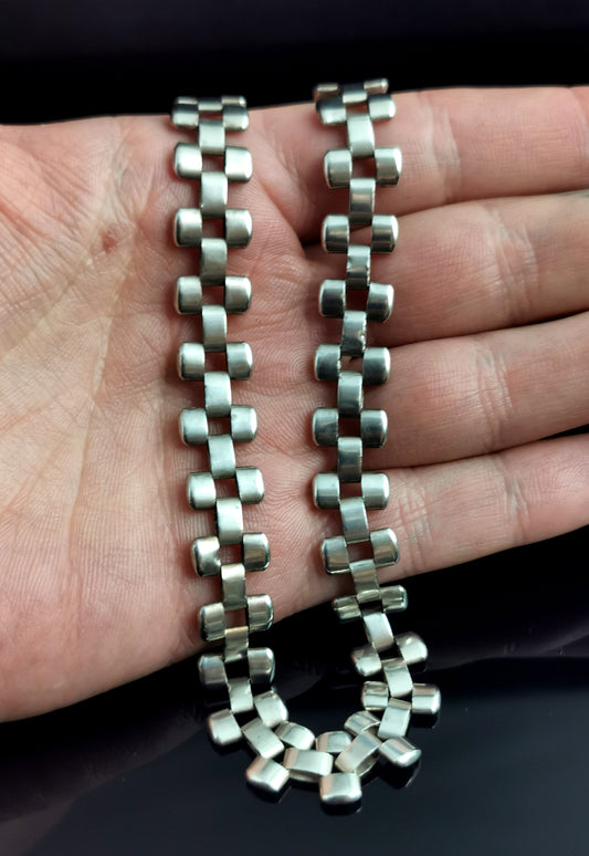 Antique Victorian silver collar necklace, brick link