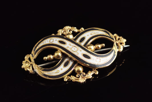 Antique Victorian Mourning brooch, 15ct gold, Black and white enamel