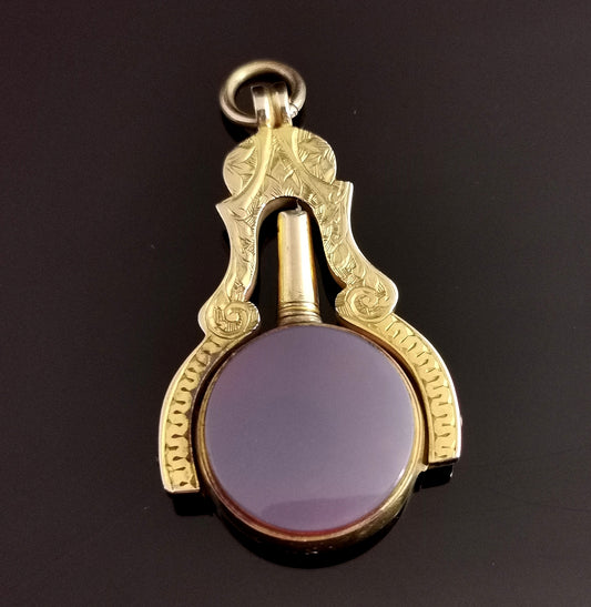 Victorian 9ct gold Watch key seal fob pendant, Masonic, bloodstone and sardonyx