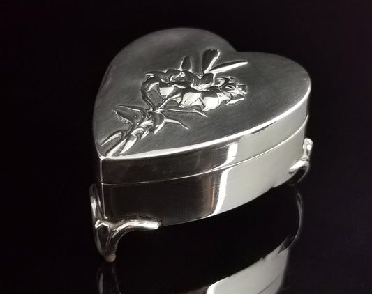Antique Silver heart shaped jewellery box, Art Nouveau