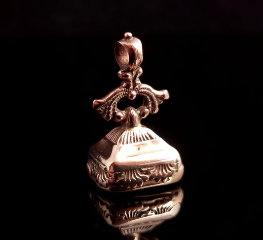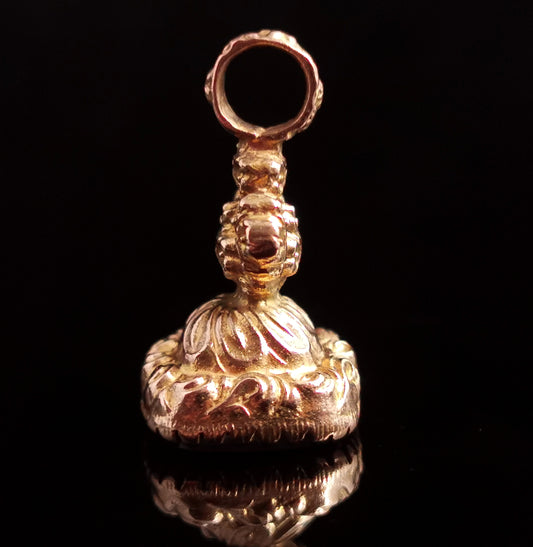 Antique Georgian seal fob, 9ct gold, Forget me not flowers, Samuel