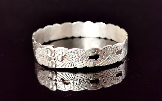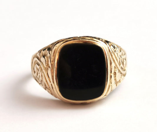 Vintage Onyx signet ring, 9ct yellow gold, Floral