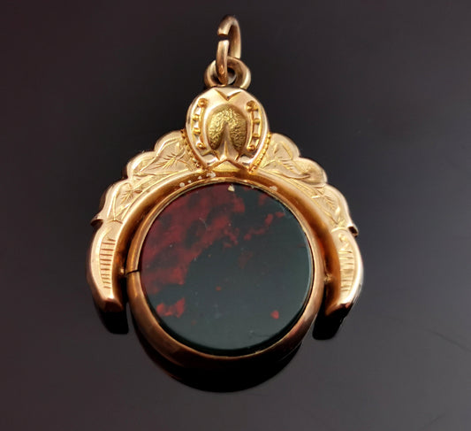 Antique 9ct gold Horseshoe swivel fob pendant, Carnelian and Bloodstone