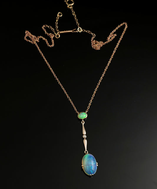 Antique Opal and Diamond drop pendant necklace, 9ct gold
