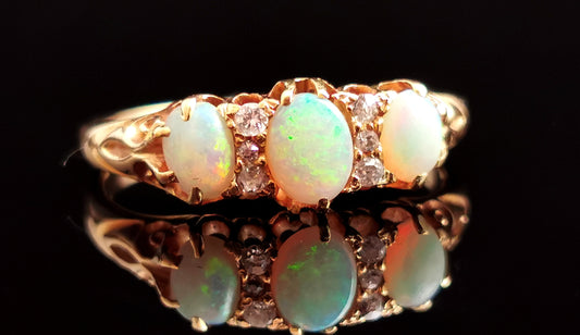 Antique Opal and diamond ring, 18ct gold, Edwardian