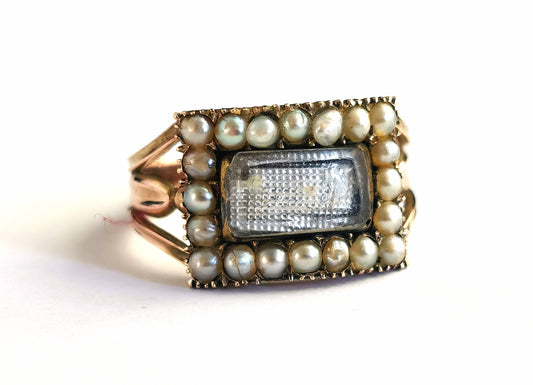 Antique Georgian Split pearl mourning ring, 9ct gold