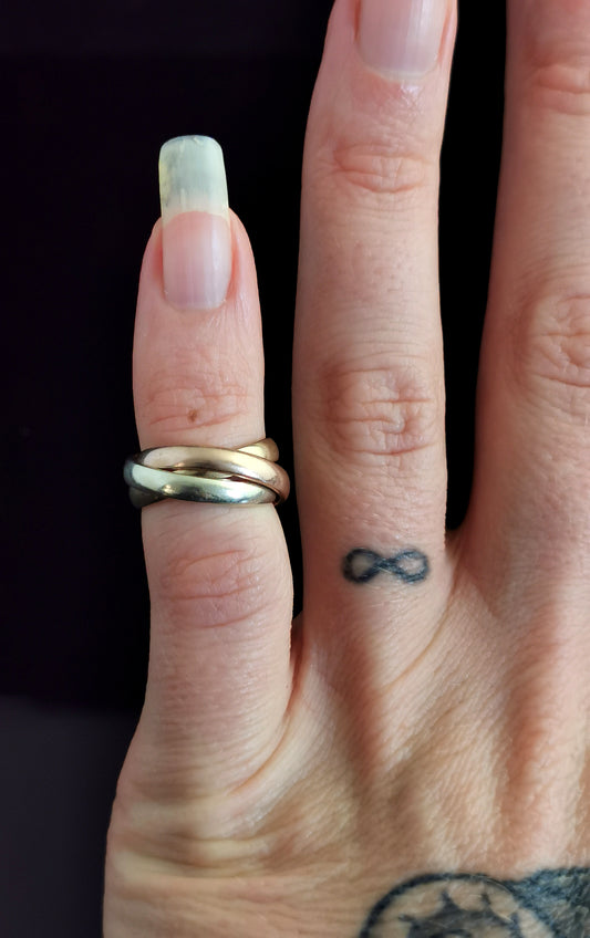 Vintage Russian wedding ring, tri colour 9ct gold, Interlocking bands