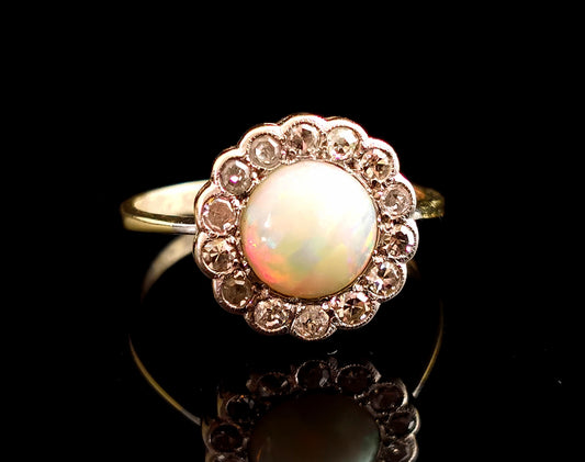 Vintage Opal and Diamond cluster ring, 18ct gold and platinum