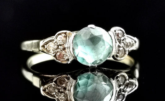 Antique Blue Zircon and Diamond ring, 18ct gold and platinum, Art Deco