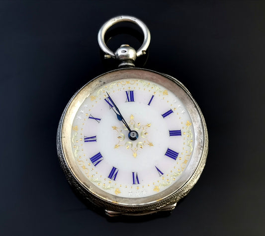 Antique fine silver pocket watch, ladies fob watch