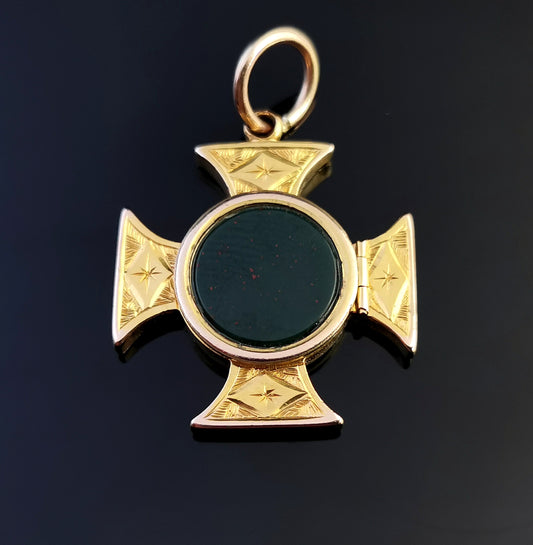 Victorian 9ct gold Maltese Cross locket, bloodstone pendant